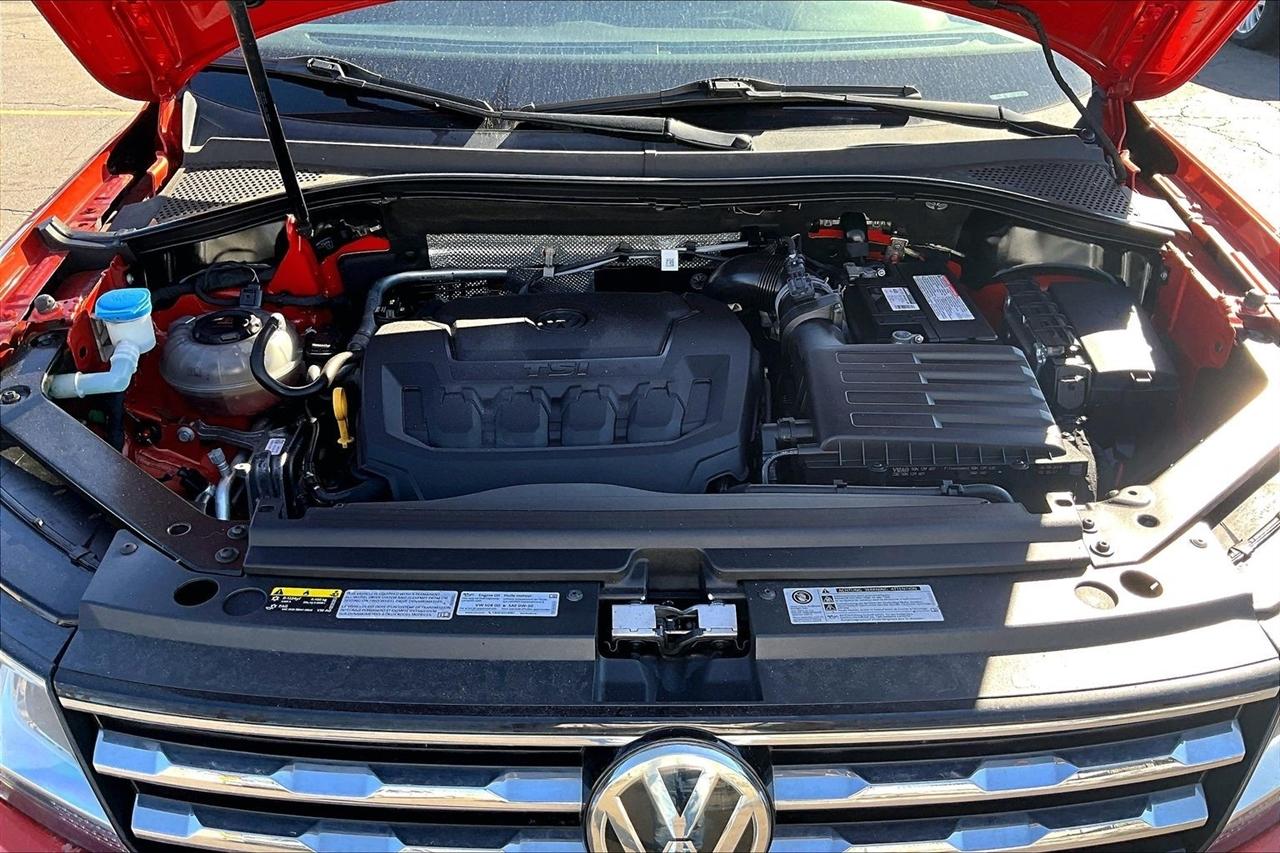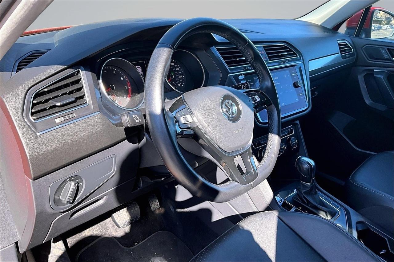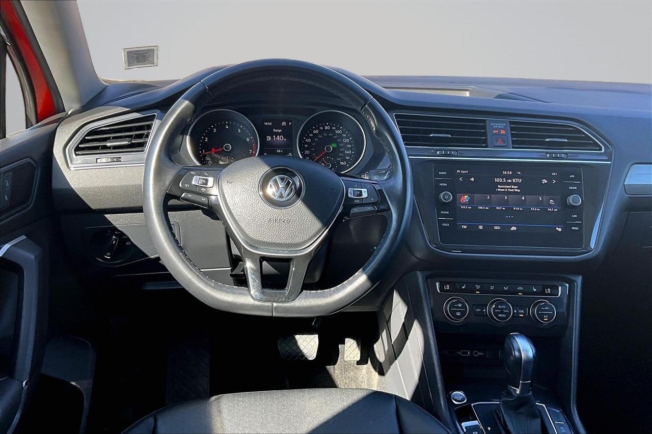 Step into luxury and style with this vibrant Orange 2019 Volkswagen Tiguan. This sleek SUV encompasses modern technology with a touch screen audio system and Bluetooth connectivity, making every drive a breeze. Equipped with a regenerative braking system and trailer stability control, the Tiguan ensures a safe and smooth ride for you and your loved ones.Picture yourself cruising down the road with the wind in your hair under the panoramic moonroof/sunroof, feeling the power of the on-demand 4WD system at your fingertips. The leatherette seats and heated driver and passenger seats provide comfort and warmth on those chilly mornings, while the dual-zone automatic climate control guarantees everyone's comfort.