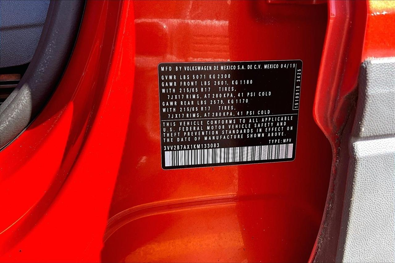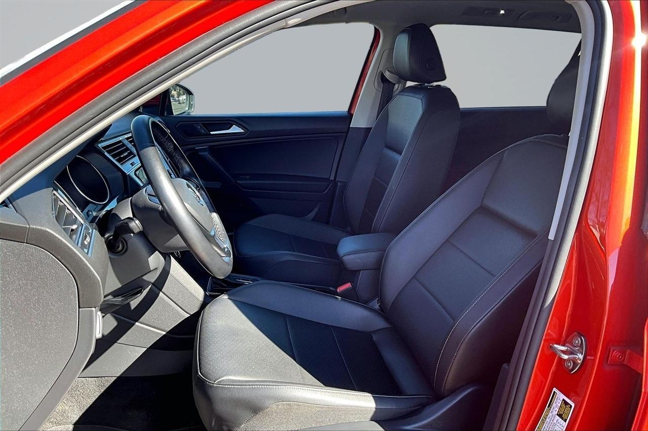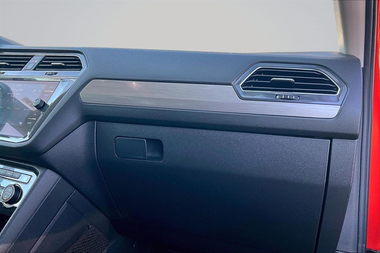 Step into luxury and style with this vibrant Orange 2019 Volkswagen Tiguan. This sleek SUV encompasses modern technology with a touch screen audio system and Bluetooth connectivity, making every drive a breeze. Equipped with a regenerative braking system and trailer stability control, the Tiguan ensures a safe and smooth ride for you and your loved ones.Picture yourself cruising down the road with the wind in your hair under the panoramic moonroof/sunroof, feeling the power of the on-demand 4WD system at your fingertips. The leatherette seats and heated driver and passenger seats provide comfort and warmth on those chilly mornings, while the dual-zone automatic climate control guarantees everyone's comfort.