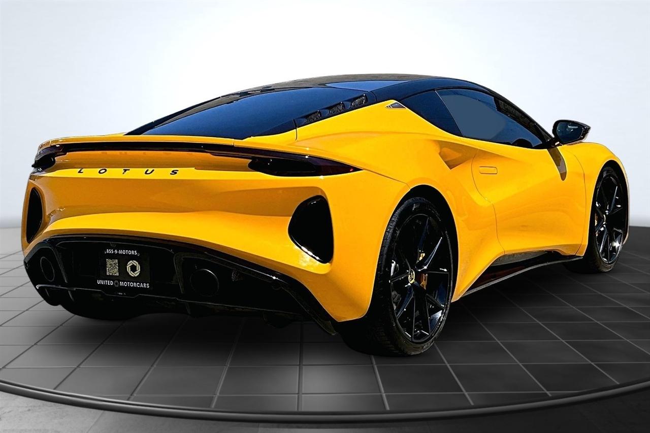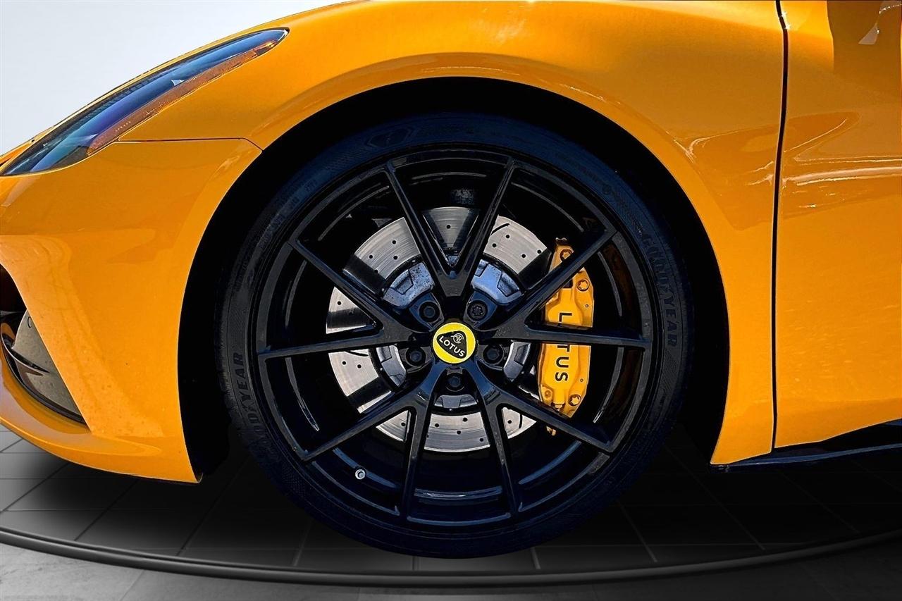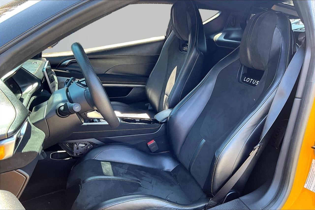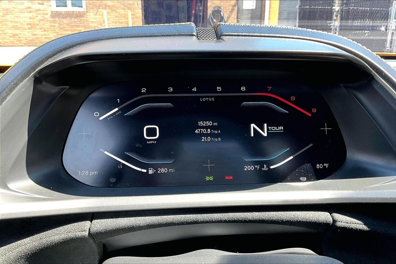 Get ready for a thrilling ride in this sunshine yellow 2024 Lotus Emira! Slip into the luxurious leather seats and feel the warmth of the heated passenger and driver seats as you prepare to hit the road. With dual A/C zones and automatic climate control, you'll stay cool and comfortable no matter the weather outside.Cruise with confidence knowing you have a backup camera, front and rear parking sensors, and blind spot sensor alerts to keep you safe on the road. The LED headlights, daytime running lights, and rain sensing wipers ensure optimal visibility in any conditions.