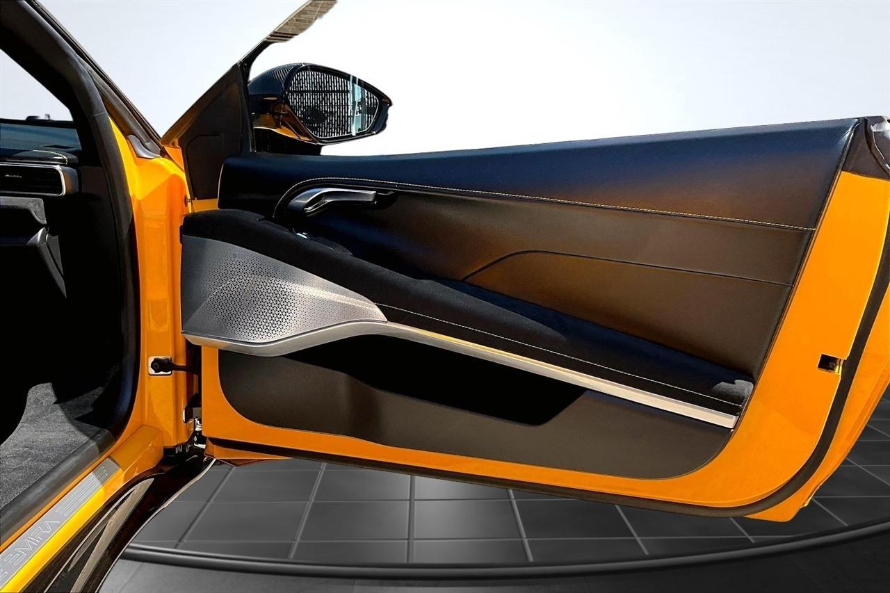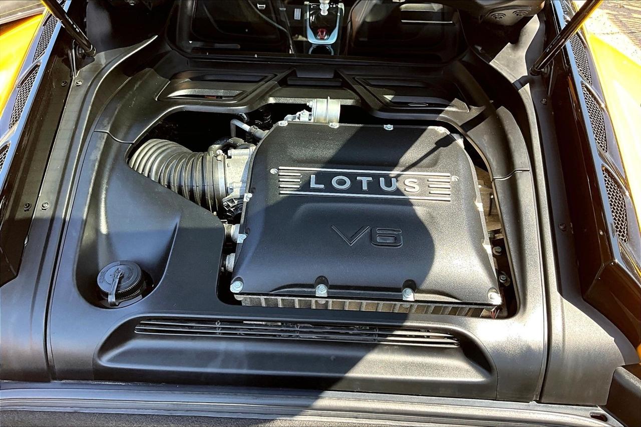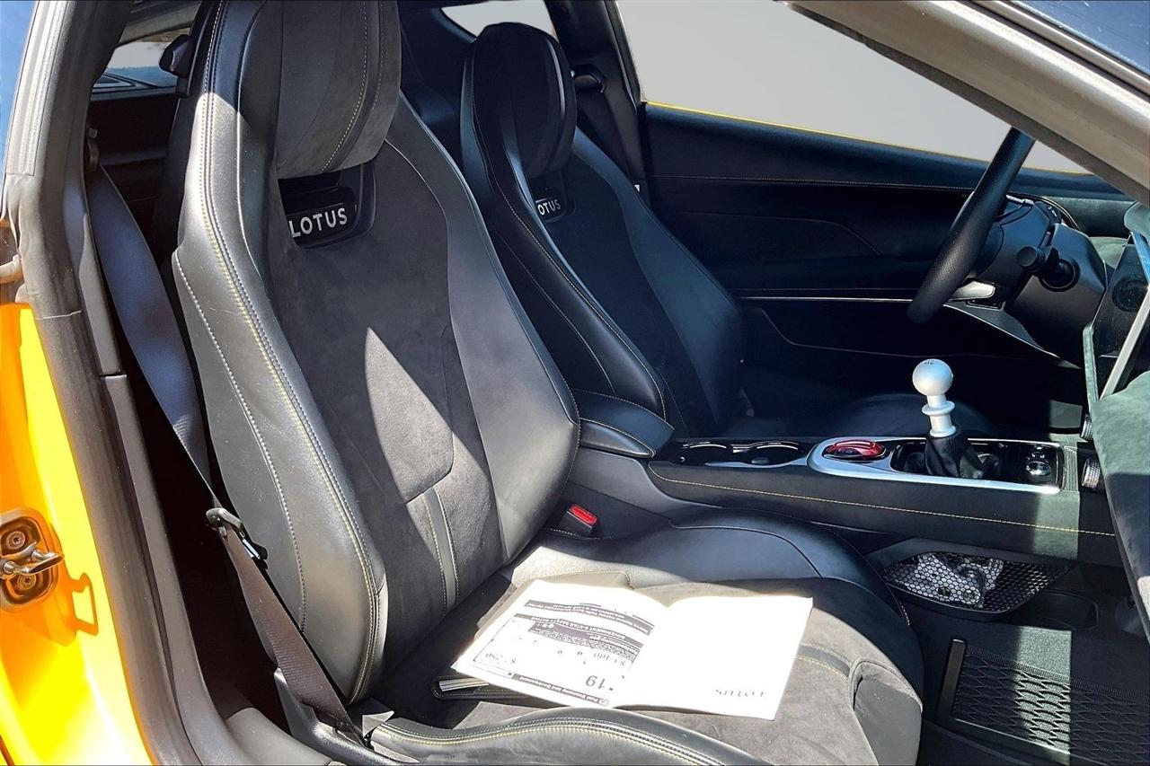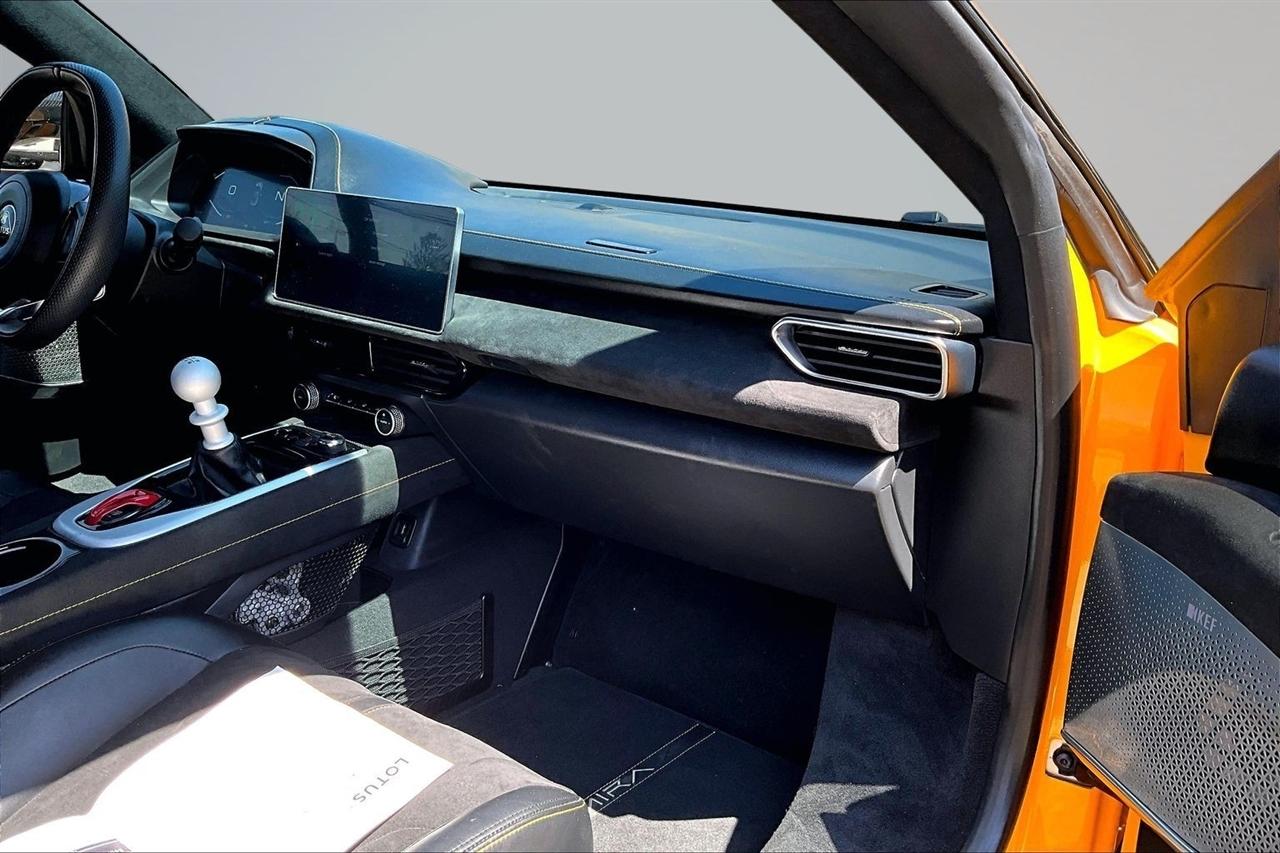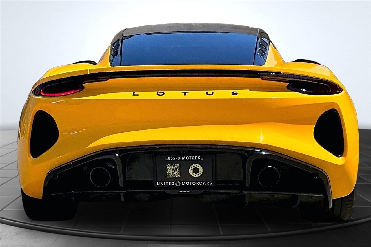Get ready for a thrilling ride in this sunshine yellow 2024 Lotus Emira! Slip into the luxurious leather seats and feel the warmth of the heated passenger and driver seats as you prepare to hit the road. With dual A/C zones and automatic climate control, you'll stay cool and comfortable no matter the weather outside.Cruise with confidence knowing you have a backup camera, front and rear parking sensors, and blind spot sensor alerts to keep you safe on the road. The LED headlights, daytime running lights, and rain sensing wipers ensure optimal visibility in any conditions.