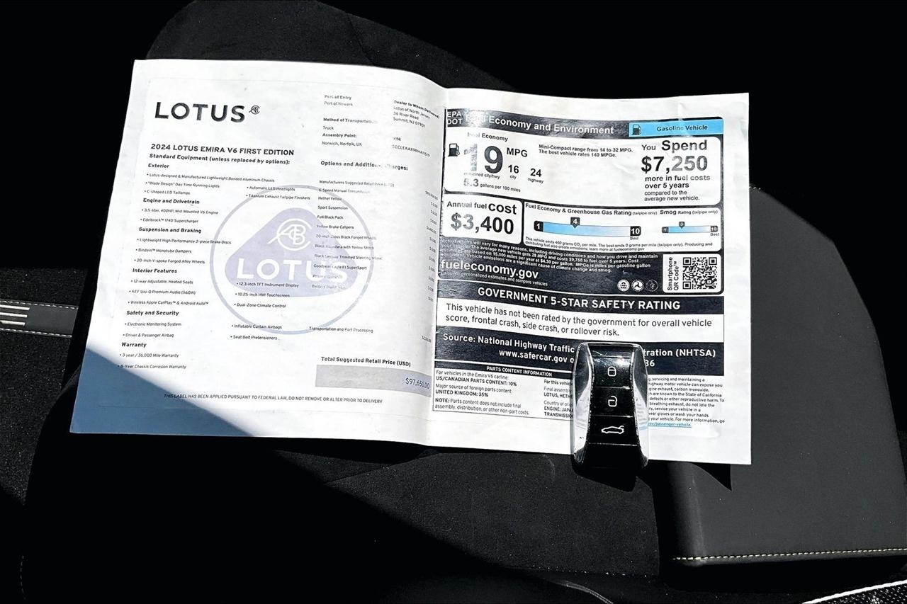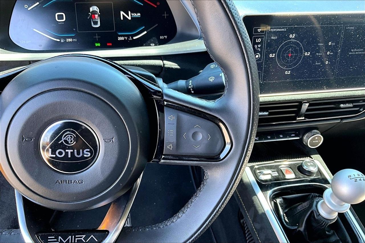 This Emira also comes with a plethora of other features like traffic sign recognition, alarm system, power locks with remote proximity entry, and a Carfax report available for your peace of mind. Get behind the wheel of this stunning Lotus and experience driving bliss like never before!